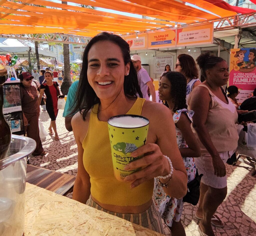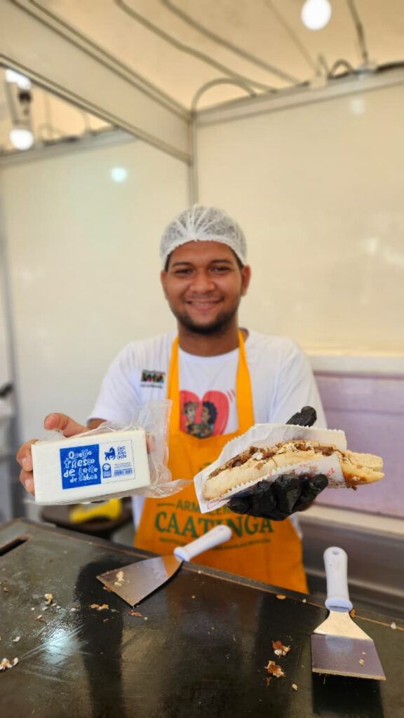 Na praça de alimentação da feira, os visitantes também puderam saborear o queijo de leite de cabra, produzido pelo laticínio da comunidade Testa Branca, em Uauá, disponível no estande Muito Mais que Bode, iniciativa vinculada à Central da Caatinga, ampliando a experiência gastronômica e fortalecendo a integração entre os empreendimentos.