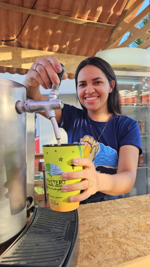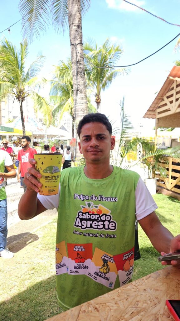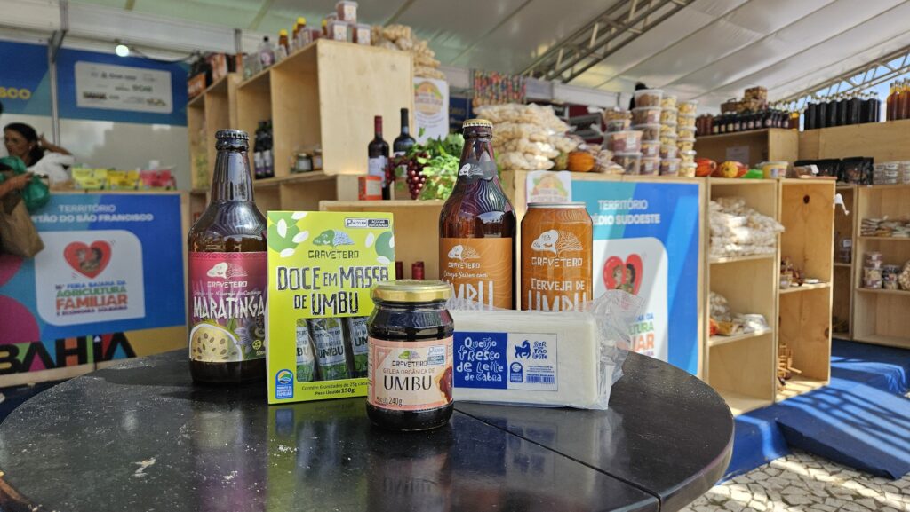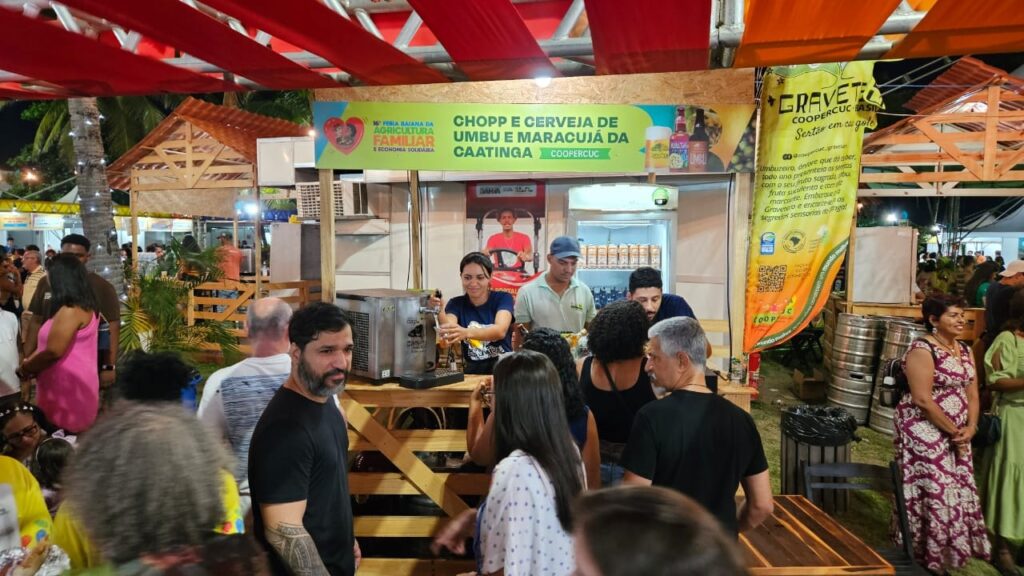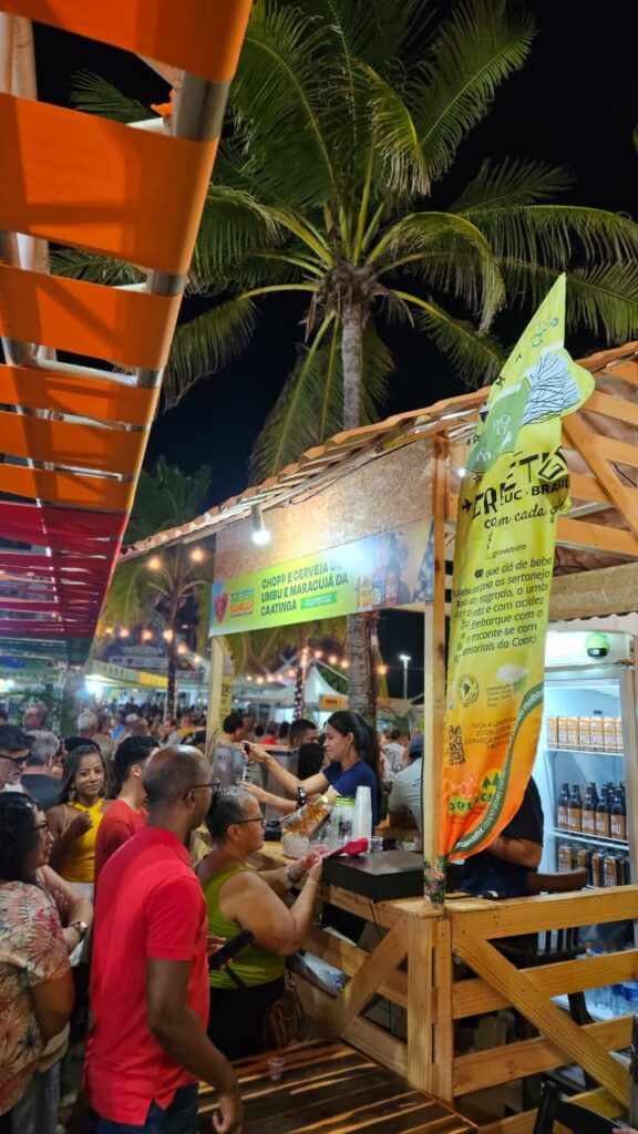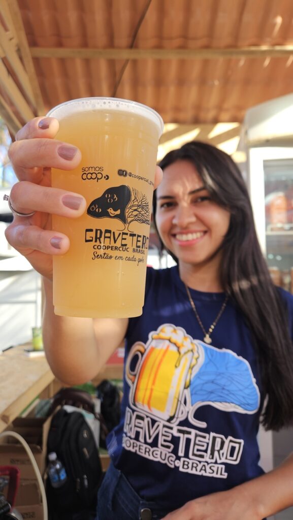 Um dos grandes atrativos foi o estande dedicado aos chopes artesanais de umbu e maracujá da Caatinga, que chamou a atenção do público pelos sabores inovadores e pela identidade territorial, copos personalizados e degustação. Ao lado desse espaço, a Coopercuc também participou do estande do Território Sertão do São Francisco, por meio da Central da Caatinga, onde apresentou uma ampla diversidade de produtos, como doces, geleias, cervejas artesanais e outros itens da nossa e outras cooperativas do território.